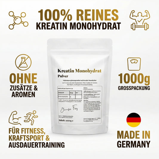Kreatin Monohydrat Pulver 1000g – 200 Portionen | Mikronisiert (Mesh 200) – Vegan, Made in Germany