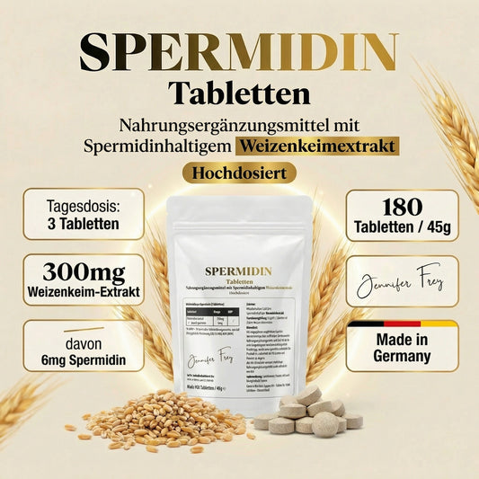 180 Spermidin Tabletten 6,0 mg Spermidin pro Tagesdosis I für deine tägliche Ergänzung. 100% vegan - laborgeprüfte Qualität I Made in Germany